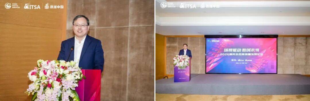 随后,中关村智科服务外包产业联盟副理事长兼秘书长张强向与会代表汇报了联盟2025年的工作成果与2026年展望。他介绍,联盟在过去一年通过举办上百次沙龙,积极推动产业对接,并在“智慧服务+”理念下成功推进了包括“教育智能体”、民航空管数字化等多个具体项目;在标准化建设方面,联盟深度参与了数字贸易标委会工作,并重点牵头研制了《数字服务企业能力成熟度评价模型》;在国际化方面,联盟于2025年成功承办了商务部支持的里斯本网络展,助力中国企业开拓欧洲市场,并设计了“China Data Service”标识以打造中国数字服务统一品牌。展望新一年,联盟将继续在政策服务、项目对接、标准完善与国际合作等方面发力。